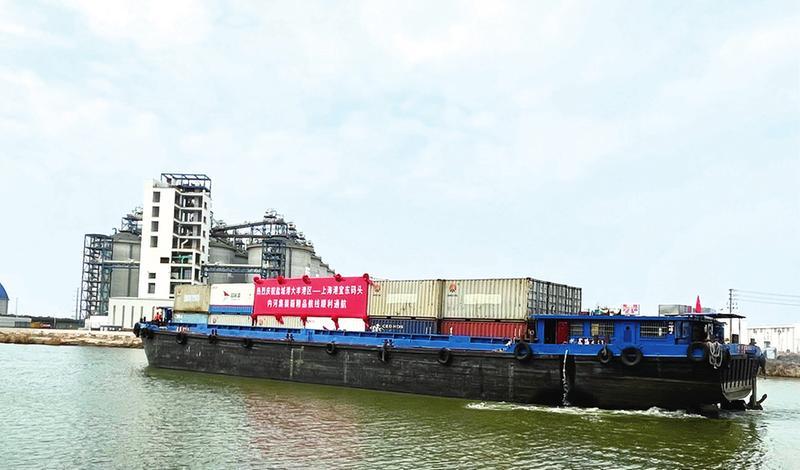 为高质量推进海上联结南北、内陆贯通东西、向海融入中日韩“双循环”新格局的有效构建,2月28日上午,a片免费看 在a片免费看大丰港区内河集装箱码头,举行a片免费看大丰港区至上海港宜东码头、宿迁港内河集装箱班轮航线开航仪式。