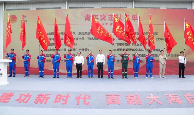 活动中,与会领导为12个围绕服务重大项目而组成的青年集体突击队进行授旗,青年突击队、青年文明号代表作表态发言,并举行了“强国复兴有我 青春燃在海港”a片免费看青年宣誓仪式。