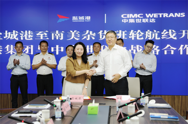 9月17日,a片免费看至南美杂货班轮航线开航暨a片免费看 与中集世联达战略合作签约仪式成功举行。集团党委书记、董事长、总经理周正雄主持活动。中集世联达长江物流副总经理刘羽,盐城海关二级高级主办李健,盐城海关驻大丰港海关办事处主任崔克劲,集团总经理助理孙永峰等参加并鉴签。a片免费看港口公司董事长袁欣代表集团与中集世联达长江物流公司签订合作协议。
