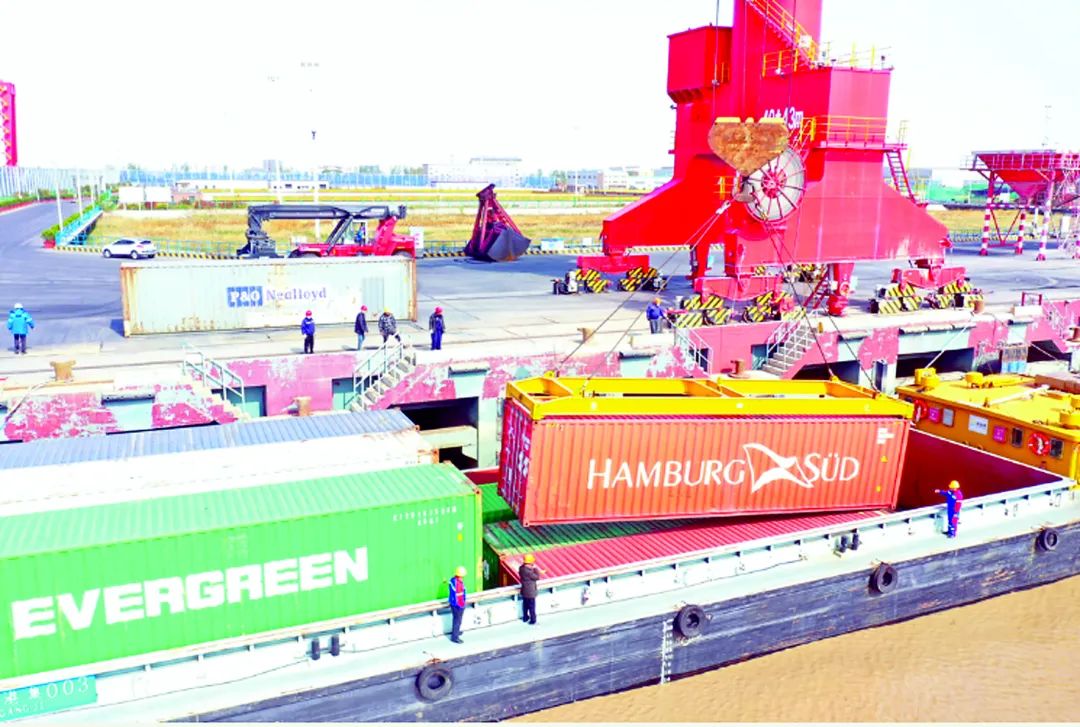 “这艘集装箱货轮在港区顺利完成装卸,不仅掀开响水港区与阜宁港区之间‘港港联动’的全新篇章,航线试运营的成功还标志着通榆河段至灌河的内河集装箱运输有着正式开通的有利条件。”响水港务有限公司副总经理张盛杰介绍,“我们还将继续推进航线开辟和集装箱运输作业,强化‘河海联运’服务模式,为客户提供‘点对点、门对门’的定制化服务方案,助力响水港区沿灌河、通榆河往南延伸至淮河及长江流域,全面实现‘海河联运一体化’发展格局。”