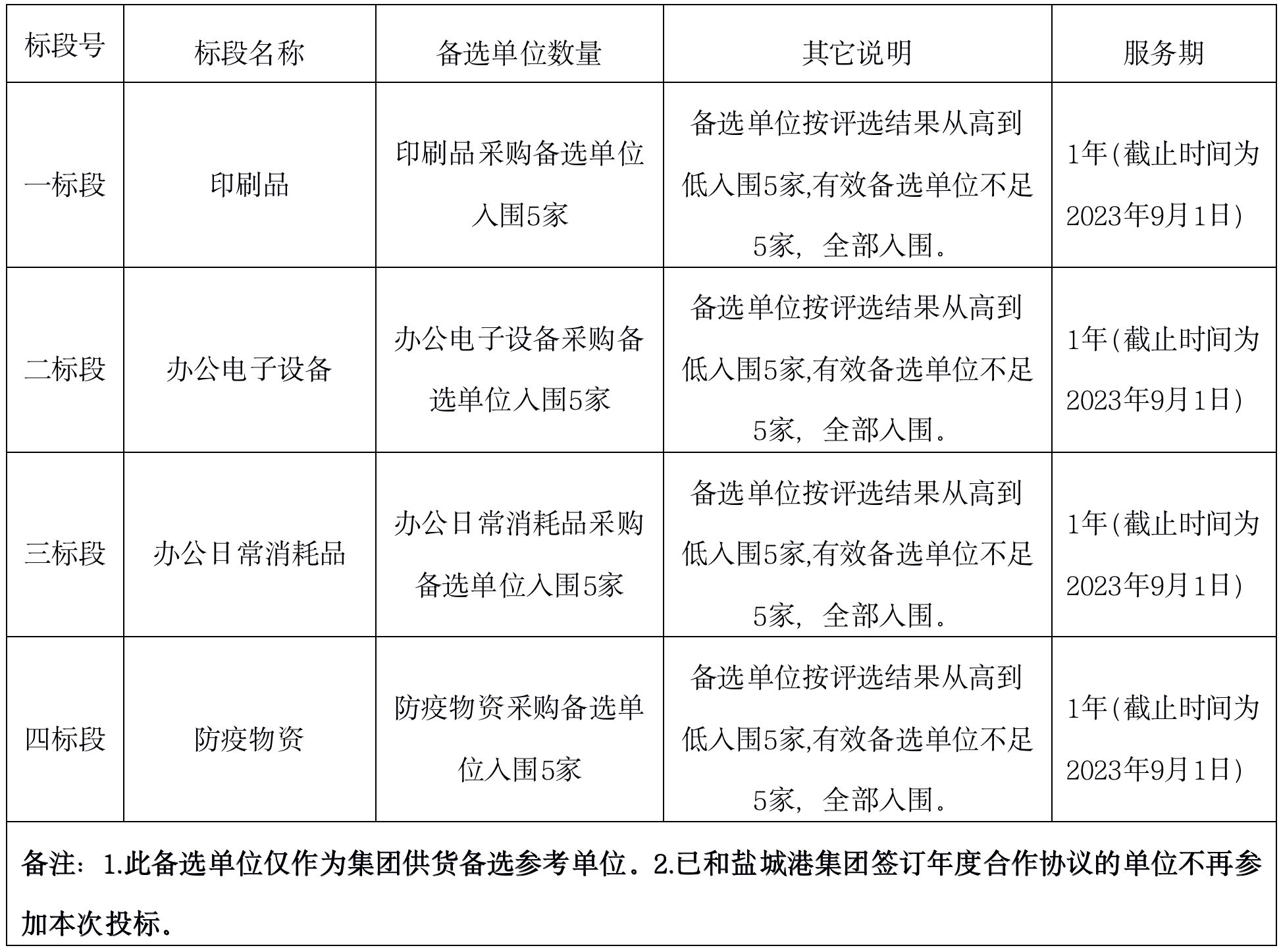 二、本次招标项目共分为四个标段,标段名称及备选数量如下: