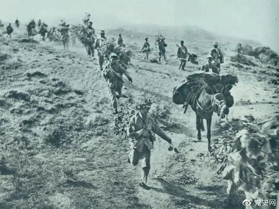 图为1947年5月在孟良崮战役中,华东野战军向孟良崮挺进。