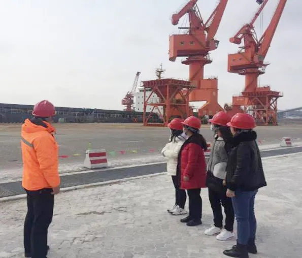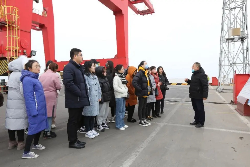 滨海港区单位女职工在生产经营部工作人员的带领下,学习门机进行装卸作业,了解码头从船舶靠岸的前期准备到靠泊后的装卸作业的全部流程。
