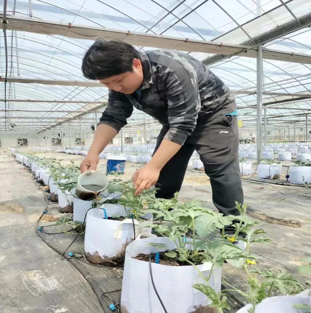 在探索西瓜重茬防治方法过程中,突破传统思维模式,采用无土栽培种植方式,结合水肥一体化滴灌系统,实现西瓜健康茁壮生长。通过更换栽培基质,从源头控制,彻底解决病原菌因环境筛选大量繁殖问题,调和了西瓜年年轮换土地导致适宜种植西瓜的土地不足而限制西瓜产业发展的矛盾。