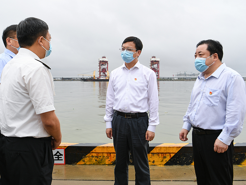调研中,曹路宝还检查了滨海港疫情防控工作,要求时刻绷紧疫情防控这根弦,在滨海港区建设高水平集中隔离生活区,满足海关、港口等不同人群隔离需要,确保实现闭环管理,坚决筑牢“外防输入”关口。