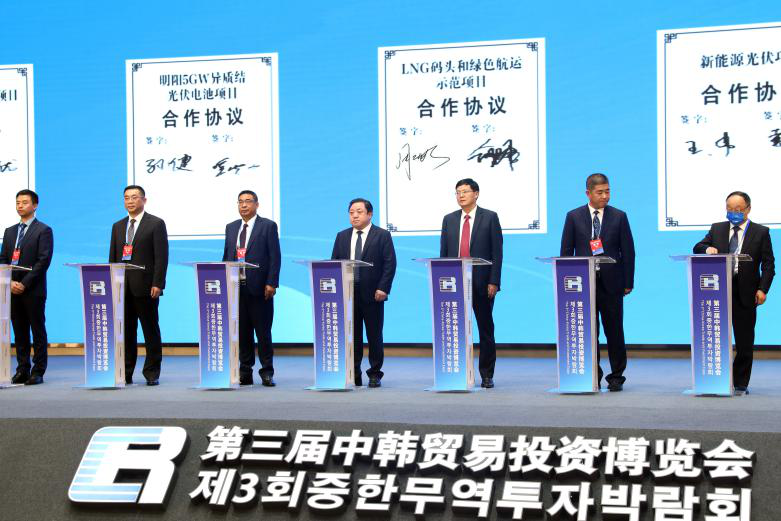 10月29日,第三届中韩贸易投资博览会暨江苏—韩国企业家交流会在盐城国际会展中心开幕。集团党委书记、董事长、总经理周正雄参加会议,并代表集团与中海油江苏天然气公司进行签约。