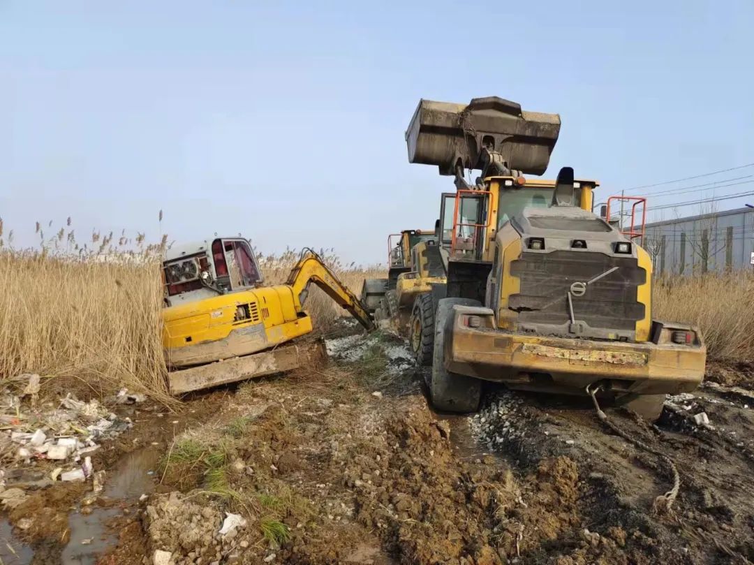 4月2日上午,响水港区A3310装载机在清理港区生活区旁空地清理废弃物时,突然遭遇作业场地塌陷,自重负荷近27吨装载机陷入淤泥中无法脱困。事件发生后,现场司机立即向当班调度进行汇报,险情就是命令,调度接到汇报后第一时间来到现场进行实地勘察。