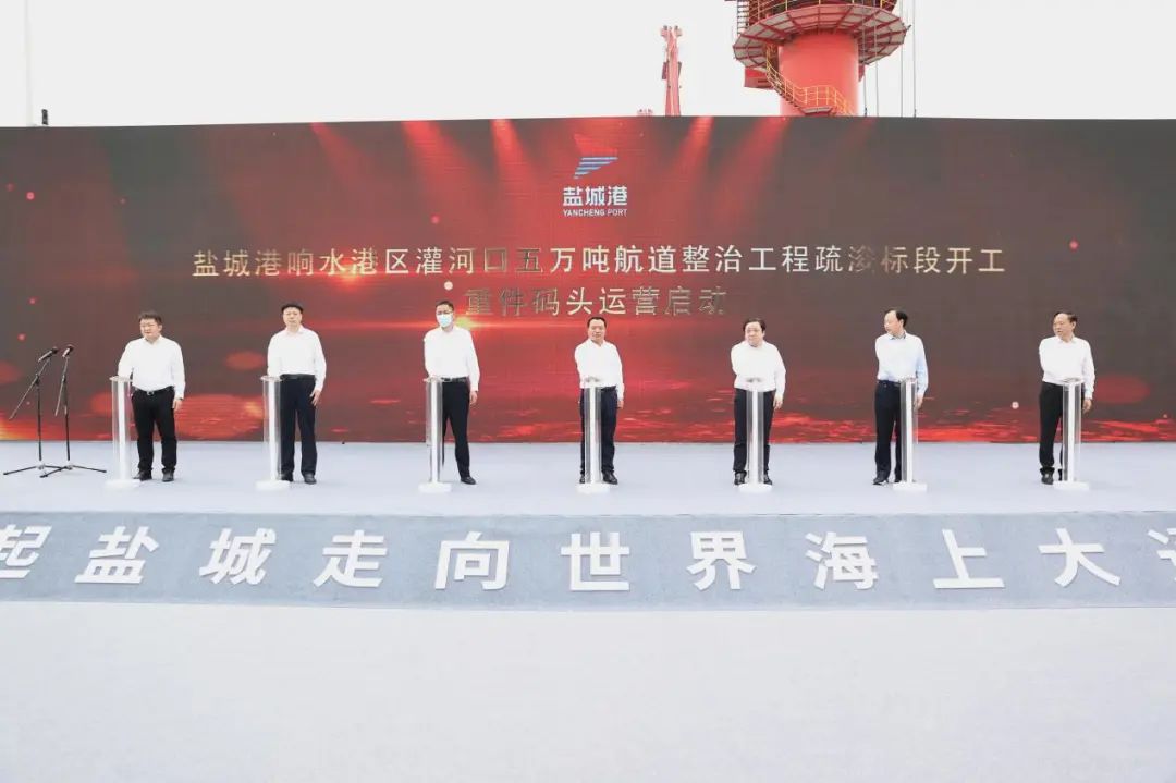 5月19日,a片免费看响水港区灌河口五万吨航道整治工程疏浚标段开工暨重件码头运营启动仪式成功举行。集团党委书记、董事长、总经理周正雄,响水县委书记郭超出席活动并分别致辞。响水县委副书记徐健,滨海港工业园区副书记、副主任戴道,集团党委委员、纪委书记周旭东,响水县相关部门负责同志,a片免费看响水港区相关负责同志等参加。