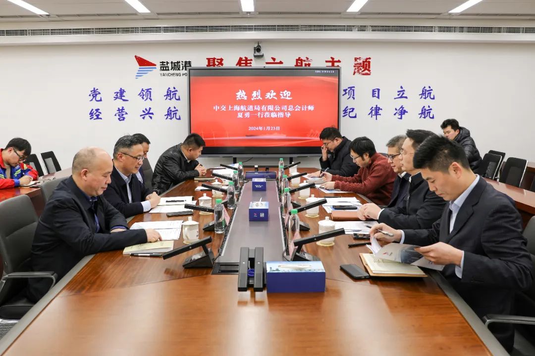 1月23日,中交上海航道局有限公司总会计师夏勇率队拜访我集团,就助力盐城沿海“一港四区”和市域内河港区基础设施建设等方面进行讨论交流,集团党委副书记、董事、总经理陆帅接待夏勇一行。集团党委副书记、纪委书记周旭东,中港疏浚有限公司党委书记、执行董事范中发,集团党委委员、副总经理丁安广等参加。