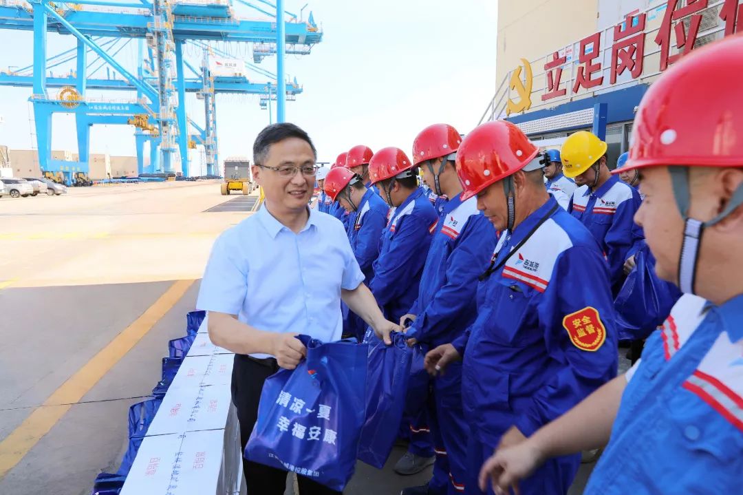 炎炎夏日,酷暑当头。为切实做好防暑降温工作,维护全港广大职工劳动和生命健康权益,7月30日,集团党委书记、董事长周正雄率队前往石化码头开展“夏送清凉”活动,并代表集团党委、董事会向高温下坚守一线的劳动者送去问候和关怀。