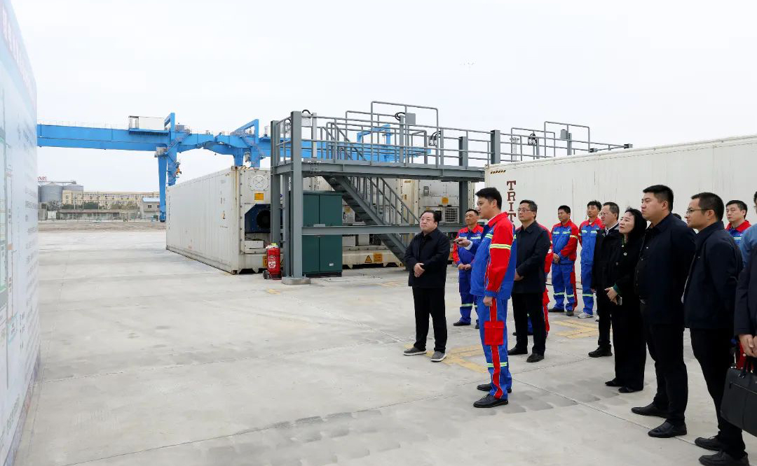 调研后,周正雄在自动化集装箱堆场召开座谈会议。