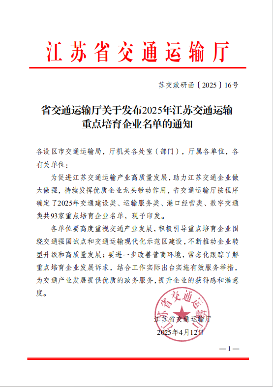 据悉,为促进交通产业高质量发展,助力我省交通企业做大做强,持续发挥优质企业龙头带动作用,省交通运输厅按程序确定了2025年交通建设、运输服务、港口经营、数字交通4类重点培育企业名单,促进交通产业提质增效,支撑交通运输现代化示范区和交通强省建设。