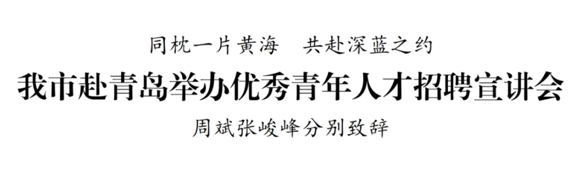 张峻峰在致辞时说,盐城素有“东方湿地、黄海明珠”的美誉,海洋资源禀赋突出,发展潜力巨大。近年来,中国海洋大学与盐城通过共建引才工作站,在打造海洋人才高地、培育海洋新质生产力等领域开展全方位、深层次合作。这次人才招聘宣讲会,是盐城精准助力学校毕业生高质量充分就业的积极举措。希望各位同学充分了解盐城,牢牢把握机遇,找到心仪岗位,在这片发展热土上建功立业。期待双方进一步发挥各自优势,拓展合作内容,形成更多成果,为海洋强国、两省海洋强省建设作出新的更大贡献。