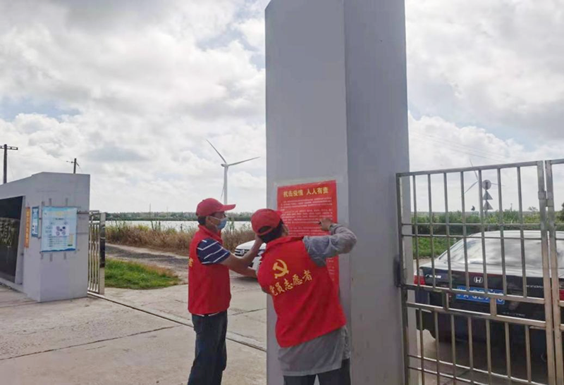 战役集结号吹响后,苇鱼养殖场响应上级部署,第一时间召开疫情防控会议,严格落实疫情防控机制,压实责任担当,组建党员先锋队、志愿者服务队对全辖区执行24小时人员排查和交通管控,设立疫情卡点,对外来人员及车辆进行摸排登记;深入各辖区、田间地头张贴防控宣传标语;入户走访排查,挨家挨户为场区居民宣传接种疫苗政策,普及接种疫苗知识,并对居民接种疫苗情况进行排查;利用微信、流动广播、横幅、宣传册等开展疫情宣传,普及疫情防治知识;他们还每天定时在公共区域进行消杀,做好地面清洁及消毒工作,有效地切断了病毒的传播途径。