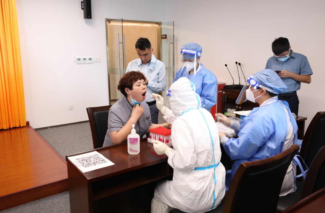 8月18日,先锋社区党员干部会同社区卫生服务中心医务工作者来集团,为集团机关全体员工提供上门核酸检测服务,齐力共筑抗疫“长城”。