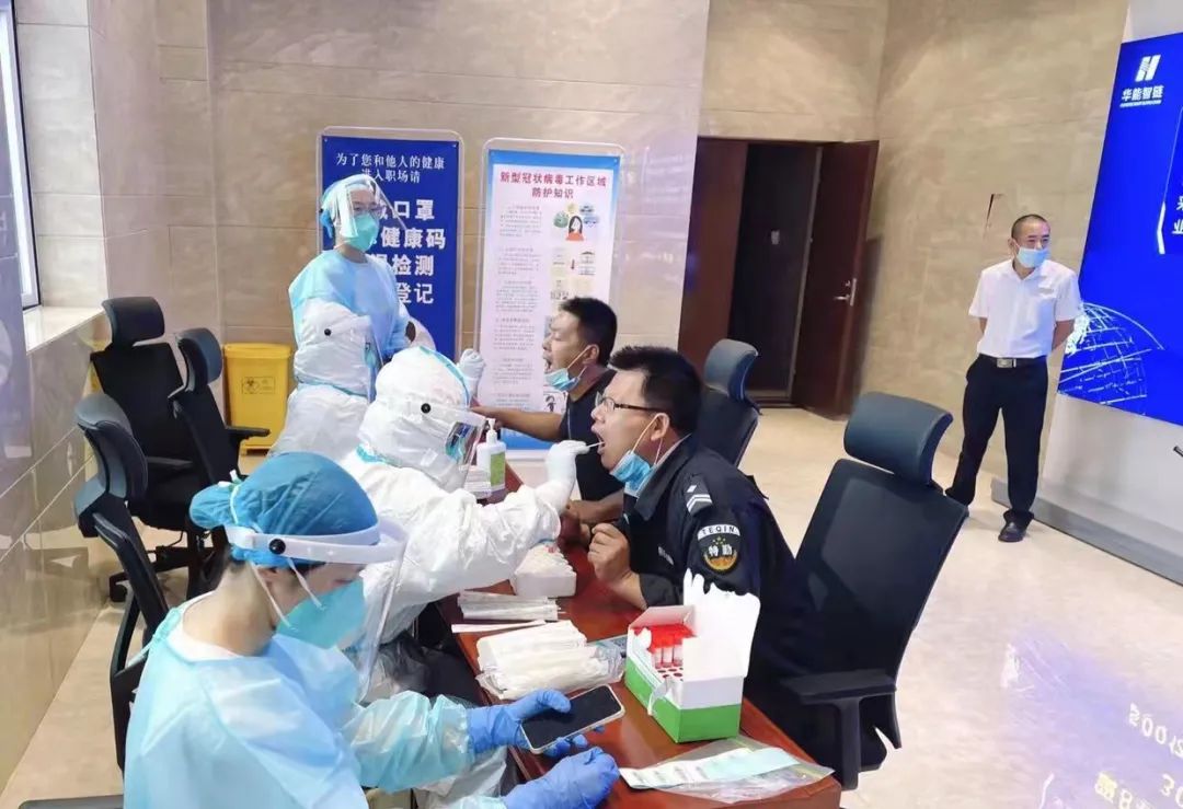 同时为确保港区核酸采集应检尽检、不落一人,射阳港区组织医护人员到建设工地设立核酸采集点,帮助无智能手机的外来务工人员解决信息登记难题,全面做好核酸采集工作。当日核酸采集持续3个多小时,共完成565人次核酸采样量。