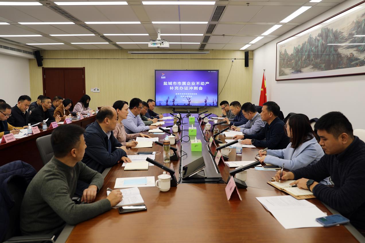 12月9日,盐城市市属企业不动产补充办证冲刺会在集团召开。市国资委三级调研员朱文明,市自然资源和规划局党委委员、副局长铁小军,集团党委委员、董事、副总经理夏立新,以及相关市属企业、各县(区)自然资源和规划局负责同志参加。