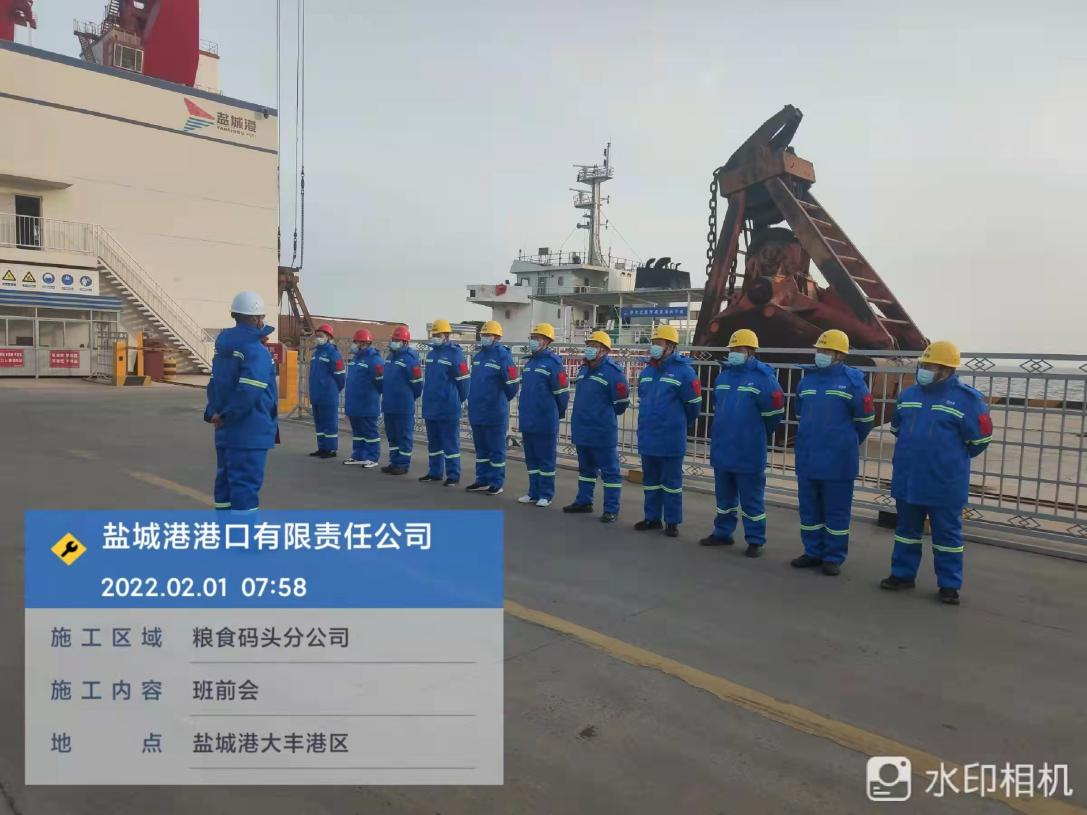 农历正月初一,a片免费看大丰港区港口公司各子(分)公司在码头(作业现场),如往常一样准点开始作业班前会,进行安全生产、疫情防控工作交底。