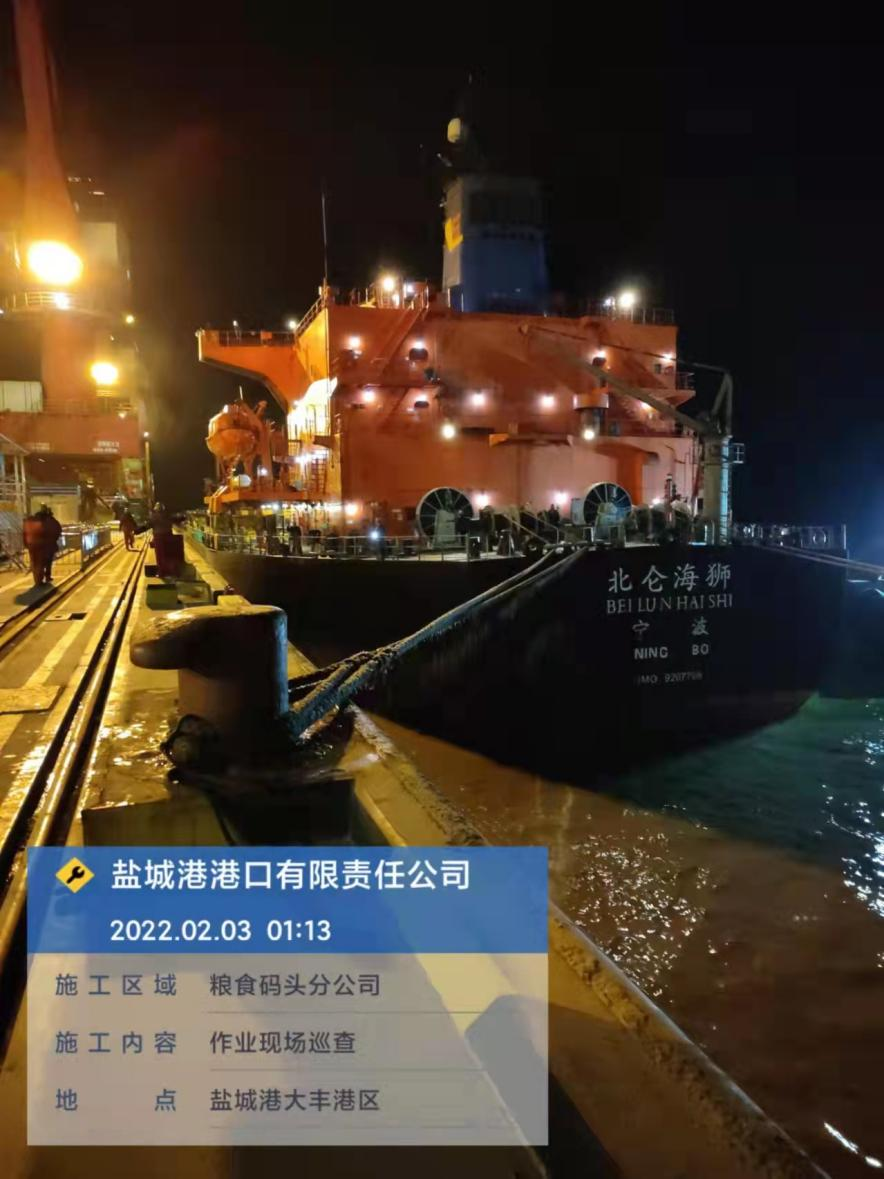 农历正月初三,a片免费看大丰港区港口公司码头共停泊4条外贸船作业,公司安全管理人员进行了24小时不间断巡查。