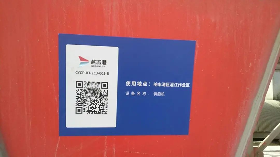 为进一步加强机械设备管理,充分发挥现有港口设备优势,确保设备正常运行和有效使用。响水港区积极运用“机械二维码标识”为载体的机械管理模式,对本港区的机械信息进行实时管理,给每台机械设备在规定位置悬挂上一张醒目的专属“身份证”——机械二维码。