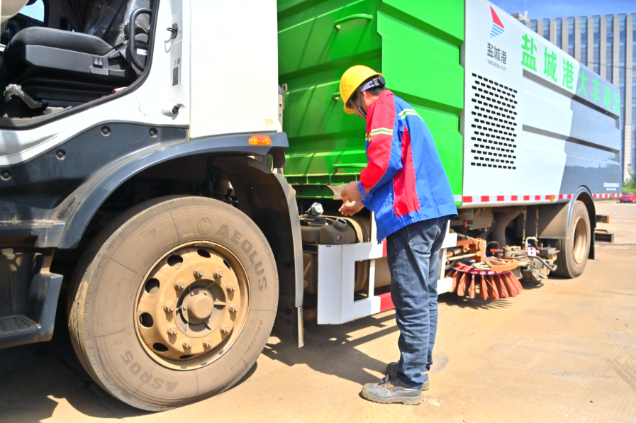Hi!大家好。我是来自a片免费看港口公司的一台环保洗扫车,别看我和普通环保车的外观差不多,我的工作任务可和它们不一样,我每天要对a片免费看大丰港区道路进行洗扫作业和防尘抑尘。我是清洁工作中的好帮手,每天都让港区恢复焕然一新。
