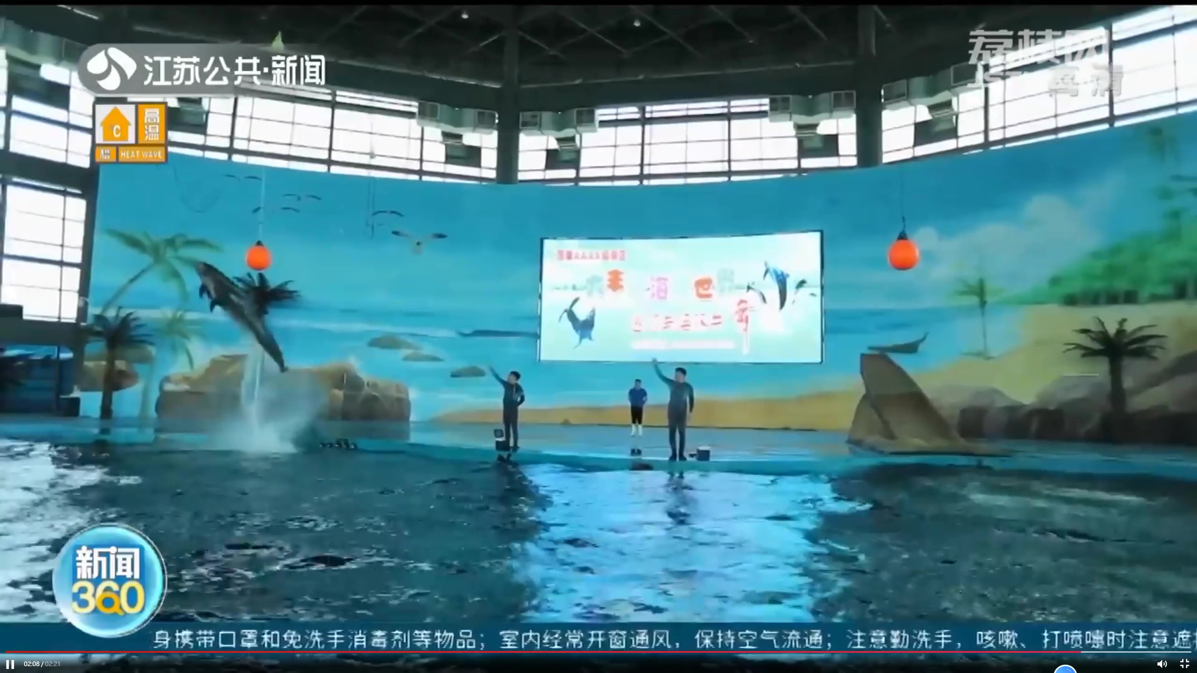 新闻中展示了a片免费看海洋馆内的驯养员与海豚互动表演,驯养员时而骑在海豚身上,让海豚在水池中快速滑翔,时而指挥海豚,让海豚在水池中高高跃起击中悬挂的气球,憨态可掬又灵活精怪的海豚带来的精彩表演引来现场观众阵阵喝彩。