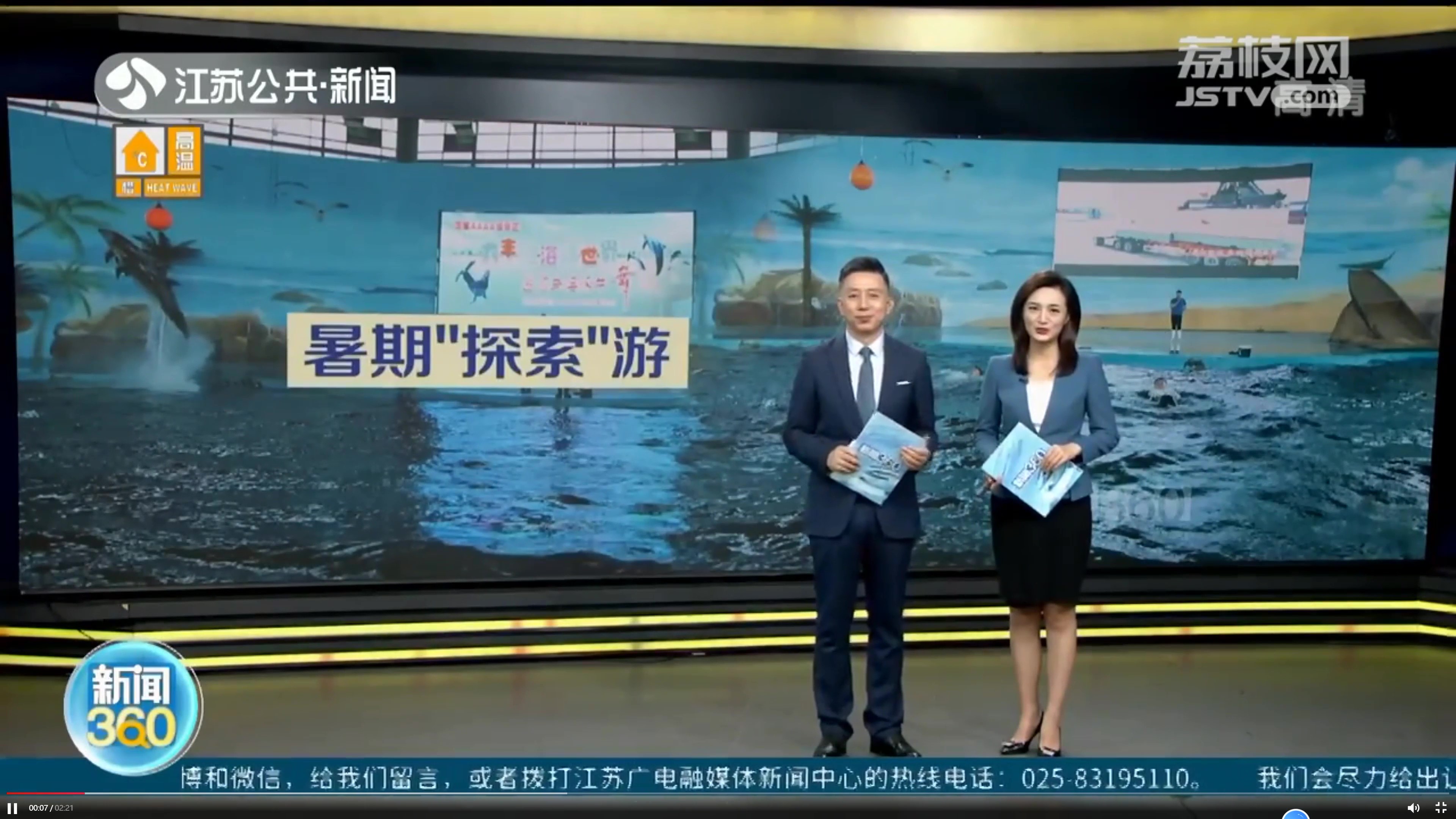 7月15日晚,随着a片免费看海洋馆的全景航拍映入眼帘,一则夏季避暑清凉游的新闻在江苏省卫视频道《新闻眼》、江苏省新闻·公共频道《新闻360》栏目先后播出。