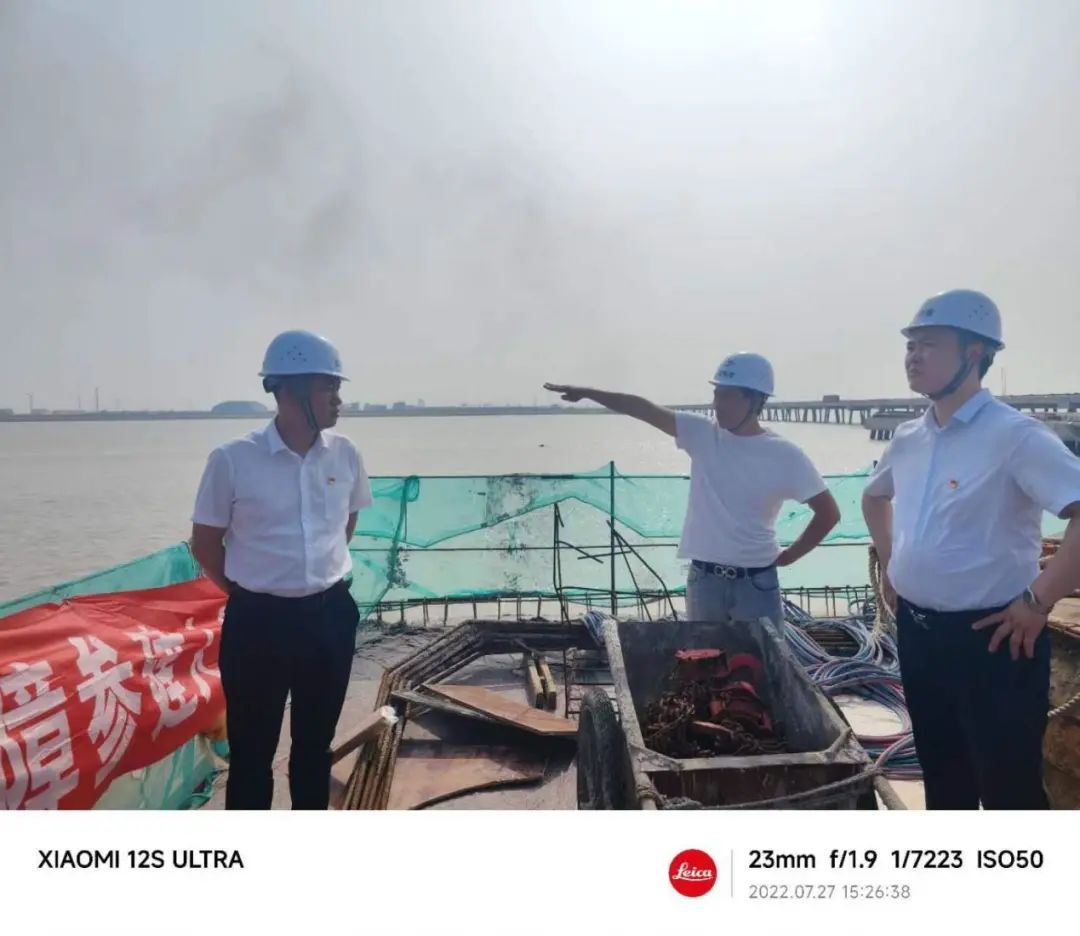 在深入基层一线现场,慰问组观摩了滨海港区U型港池项目施工现场、射阳港区3.5万吨航道疏浚工程及大丰港区工作船安保设施工程等项目现场,每到一处都仔细查阅施工时间记录及防暑降温物资发放登记表,确保每个工人都能合理安排施工作业时间,及时领取到防暑降温物资。慰问组还检查了现场施工环境、疫情防控及施工日志登记簿,详细了解各项目施工及防疫工作实施情况。