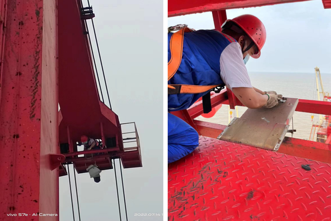 每当有货船停靠码头时,都是维修人员最紧张的时候。一旦故障发生,维修工人在半个小时内无法顺利解决就算事故,船主就要承担巨大经济损失。“我们的工作就是争分夺秒,刻不容缓!”。