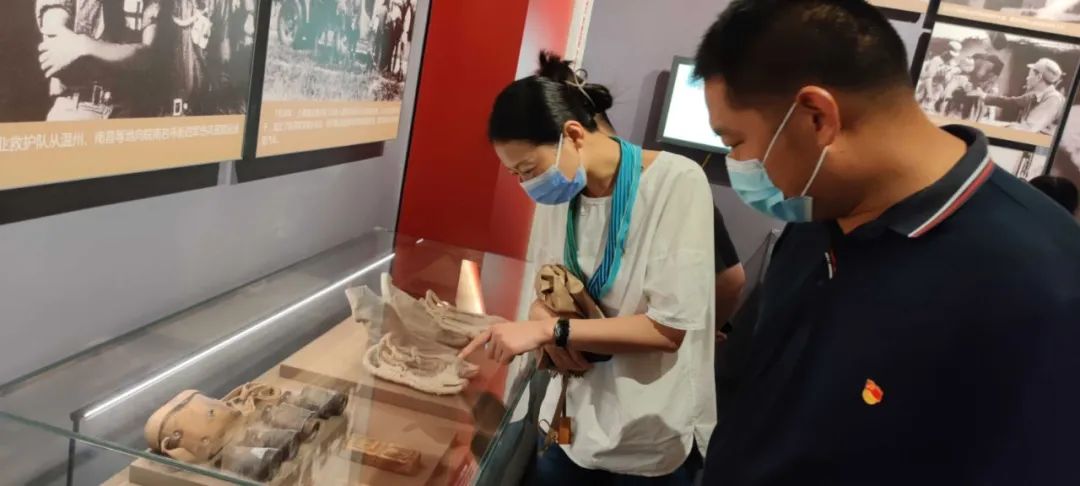 活动中,大家沿着引导标语,逐一走访各个馆区,重温新四军一路走来的峥嵘岁月。馆内一件件历史文物,一幅幅宝贵图片,展现了中国共产党创业之坎坷,奋斗之艰辛,重现了先烈用生命书写的光辉历程,革命之歌仿佛在耳边缓缓奏响。在鲜红的党旗下,同志们举起右拳郑重宣誓,铿锵的誓言响彻大厅。