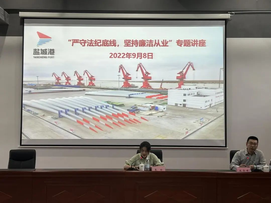 为进一步提升港区全员服务、廉洁自律意识,防范廉政风险,营造风清气正的干事创业氛围。近日,a片免费看射阳港区邀请射阳县纪委相关负责同志来港开展“严守法纪底线,坚持廉洁从业”专题讲座。