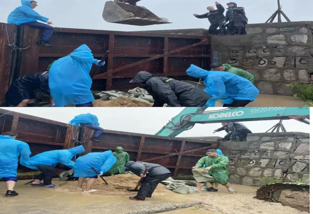 射阳港区相关负责同志带头巡查港区项目施工现场、海堤堆防汛闸门,同时组建一支15人抢险队伍,备足防汛沙袋,严格按预案要求落实执行到位。