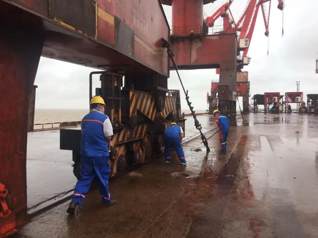 面对台风“梅花”带来的恶劣天气影响,散货码头分公司加强应急物资储备、重点部位排查,严格执行值班值守制度,全力以赴做好各项防御工作。截至14日18:00,共巡检门机、配电室隐患8处,配备沙包、铁锹、雨衣、雨靴、手电筒等物资30余件。安排值班人员12人,制定防台风巡检签字表2种,张贴安全警示标语5条,加固相关设备设施9处,竭尽全力做好各项防台应急备战工作。