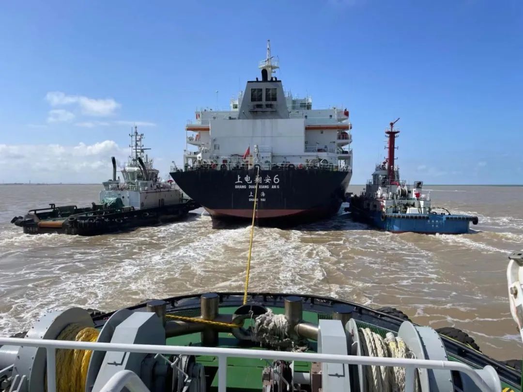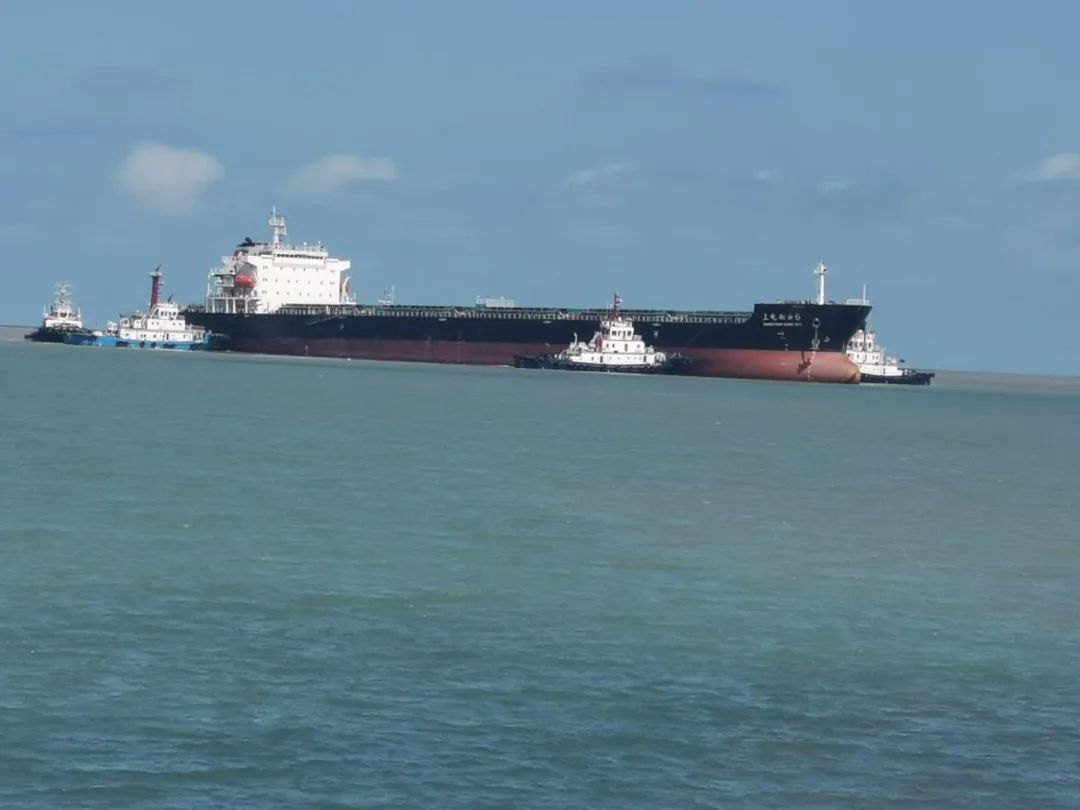 中午12时,在引航员的指挥下,现场拖轮步调一致,统一行动。在靠离泊过程中,持续加强海事、引航、拖轮、码头、船舶五方协同联动,不断调整角度和拖力,历经3个小时的努力,圆满完成了200米船舶的靠离泊等多项任务。