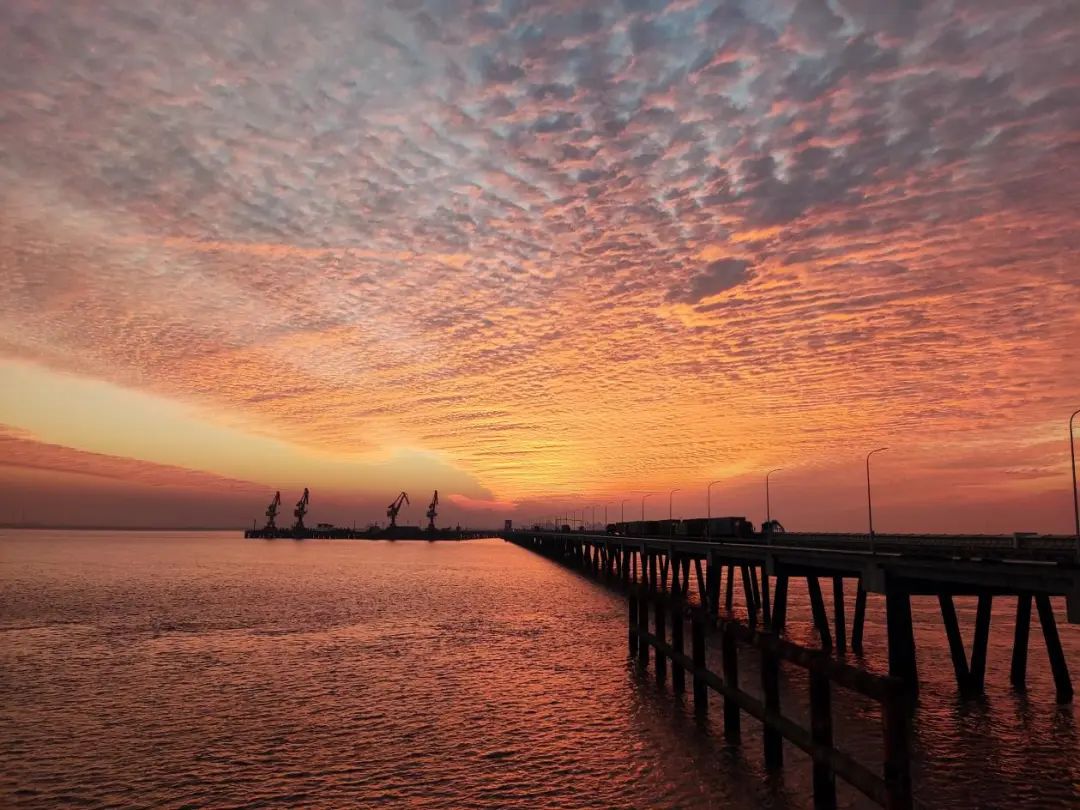秋日傍晚 红霞漫海