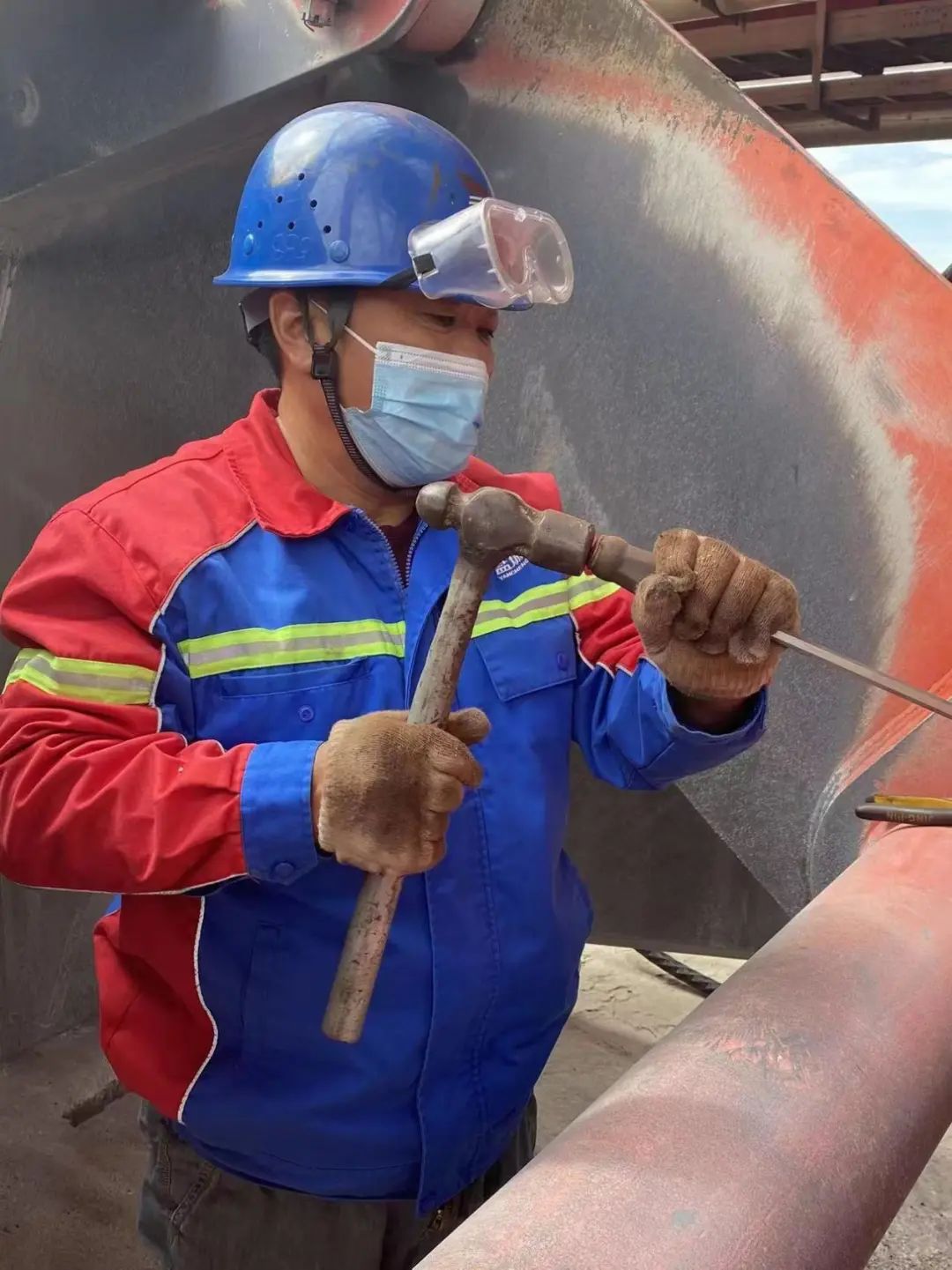 修理人员的汗水和机械