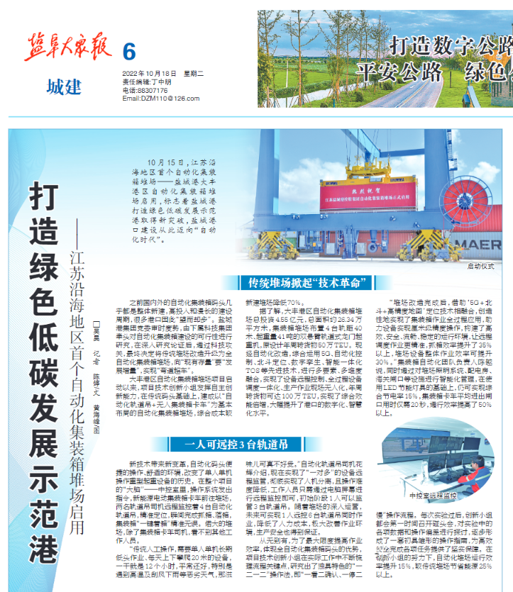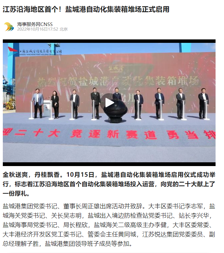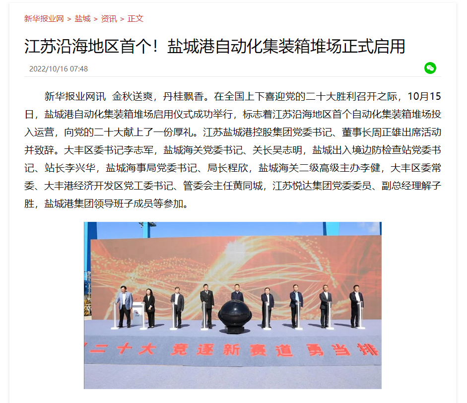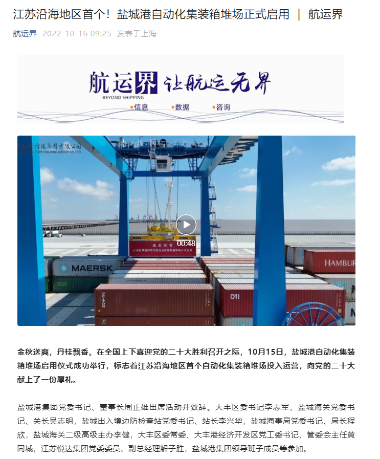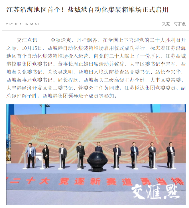 江苏沿海地区首个自动化集装箱堆场——a片免费看大丰港区自动化集装箱堆场正式启用