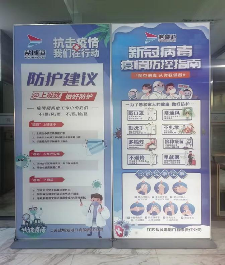通过横幅标语、防疫画报、LED屏等载体,宣传疫情防控知识,及时传递疫情动态和最新的健康管理措施,营造浓厚防疫氛围。