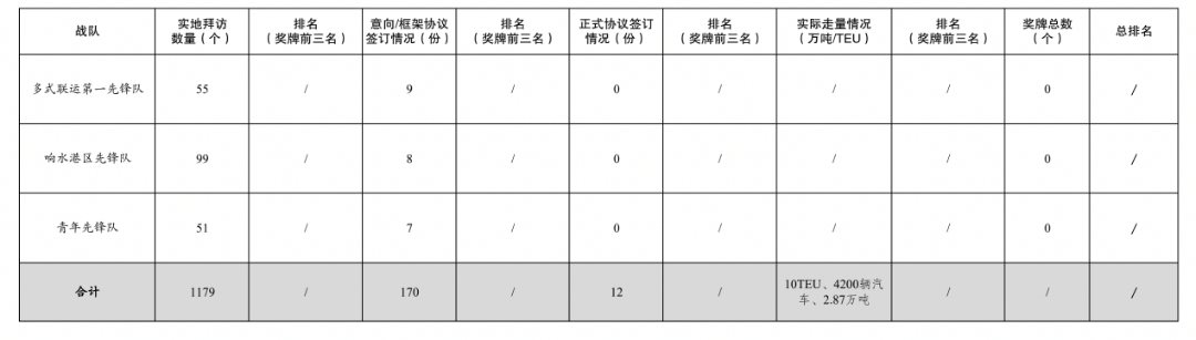 活动开展以来,累计拜访客户数量1179家,签订意向/框架协议数量170份,签订正式协议12份,实际走量10TEU、4200辆汽车、2.87万吨。