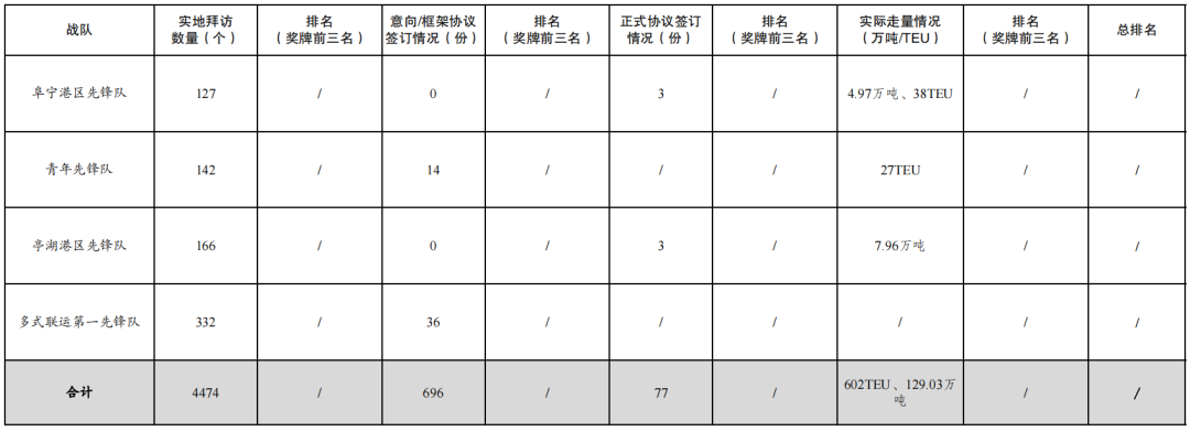 活动开展以来,累计拜访客户数量4474家,签订意向/框架协议数量696份,签订正式协议77份,实际走量602TEU、129.03万吨。