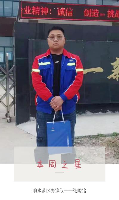 响水港区先锋队张峻铭作为一名揽货人员,深入学习集团方针,积极参加新时代“南征北战闯市场”百日攻坚活动,并在活动中取得优异的成绩。在活动中,他慢慢摸索,从不了解如何展开工作,到熟练揽货这个过程,付出了很大的努力,积累了宝贵的经验,在活动中,他总能想客户之所想,急客户之所需,排客户之所忧,赢得客户们的一致好评。他的座右铭是“学问是一切活力的源泉”,并将这一理念深化到工作中,不断提高自己的业务能力,为港口的发展贡献自己的一点绵薄之力。截至目前,已实地拜访36家,签订意向协议16份,正式协议11份,实际走量0.5万吨。
