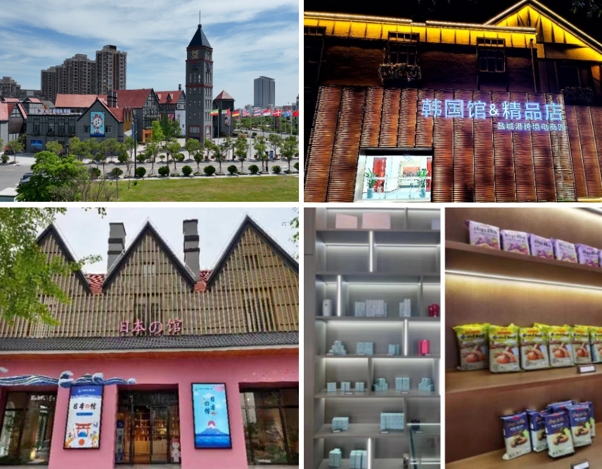 在具有多国风情建筑风格的跨境电商园