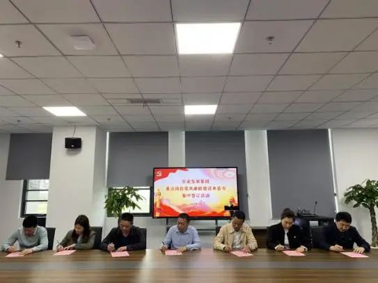 签订廉政建设承诺书。根据实业集团实际和岗位特点,签订重点岗位党风廉政建设承诺书,推动党员干部时刻做到心有所畏、言有所戒、行有所止。承诺内容包括了廉洁从政、依法履职和个人作风等方面的内容,督促他们加强自我约束,始终保持清醒头脑,自觉做到明纪法、知敬畏、守底线。
