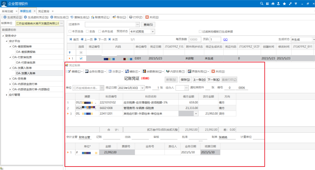 据介绍,通过集团OA系统与浪潮系统进行对接开发,差旅费、发票入账、付款审批、内部资金拨付等5类单据实现了凭证自动生成,可覆盖响水港业务30%的凭证数量。自动化凭证不仅有效减少了手工凭证工作量,提高了财务人员工作效率,同时很大程度避免了人工录入错误的出现,进一步提升了凭证信息的准确性。