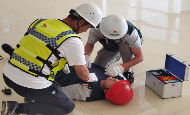 理论培训结束后,各港区培训人员在建湖港区大楼观摩学习了触电伤害安全事故应急演练。