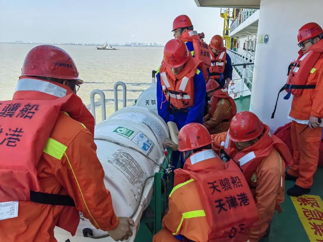 随后,弃船演习正式开始,“弃船了!”“天骥号”船长发出弃船警报,所有船员穿好救生衣,带好安全帽、携带应变部署要求器材,完成弃船前准备工作,释放救生筏。演习过程井然有序,达到了演习的预期目标。
