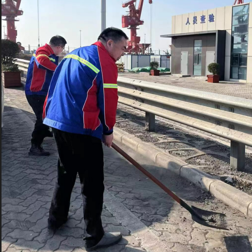 他们手拿铁锹 肘夹扫把 急吼吼往前赶