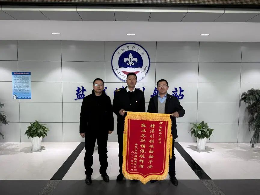 a片免费看引航站收到江苏a片免费看智慧港口有限公司、中天大丰海缆有限公司、盐城捷顺船舶代理有限公司的三面锦旗