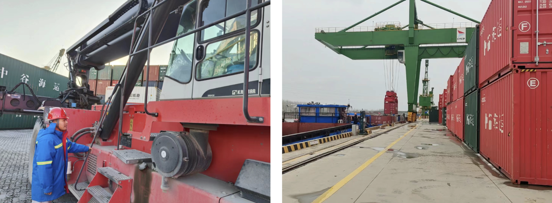 随着亭湖港区上海航线及外贸航线的开通,港口集装箱货物吞吐量持续攀升,面对繁重的工作任务和紧张的作业时间,邓盾始终保持着高昂的工作热情和严谨的工作态度。他熟练地操作着正面吊,精准地完成每一次吊装、搬运和堆码作业。