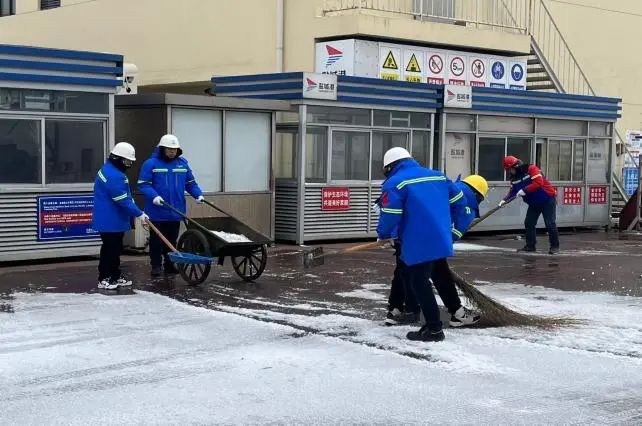 拿起雪铲、铁锹、扫把等工具齐上阵